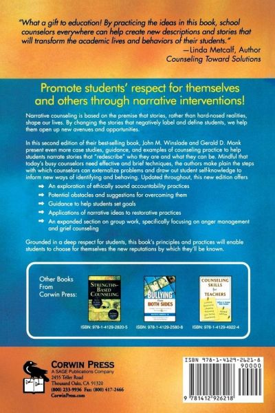 'What a gift to education! By practicing the ideas in this book, school counsellors everywhere can help create new descriptions and stories that will transform the academic lives and behaviours of their students' - Linda Metcalf, Author of Counseling Toward Solutions and Solution-Focused School Counseling Narrative counselling in schools is based on the premise that stories, rather than hard-nosed realities, shape our lives. By changing the stories that negatively label and define students, we help them open up new avenues and opportunities. In this second edition of their bestselling book, John Winslade and Gerald Monk present even more case studies, guidance, and examples of counselling practice to help students narrate stories that "redescribe" who they are and can be. Mindful that today's busy counsellors need effective and brief techniques, the authors make plain the steps with which counsellors can externalize problems and draw out student self-knowledge to inform new ways of identifying and behaving. Updated throughout, this new edition offers: o An exploration of ethically sound accountability practices o Potential obstacles and suggestions for overcoming them o Guidance to help students set goals o Suggestions for implementing methods of restorative justice o An expanded section on group work in the United States, specifically focusing on anger management and grief counselling Grounded in a deep respect for students, this book's principles and practices will enable students to choose for themselves the new reputations by which they'll be known.