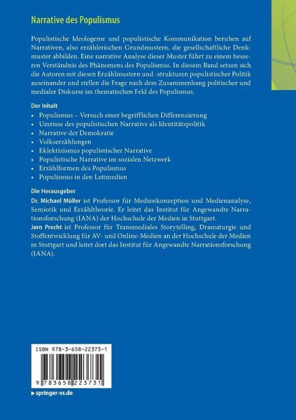 Der InhaltPopulismus - Versuch einer begrifflichen Differenzierung - Umrisse des populistischen Narrativs als Identitätspolitik - Narrative der Demokratie - Volkserzählungen - Eklektizismus populistischer Narrative - Populistische Narrative im sozialen Netzwerk - Erzählformen des Populismus - Populismus in den Leitmedien