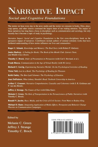 This edited bk addresses theoretical & applied questions regarding the ever-more-apparent role of narrative in both socials & cognitive realms of experience. It will benefit researchrs & grad students in social & cog psych, communication & applied psych.