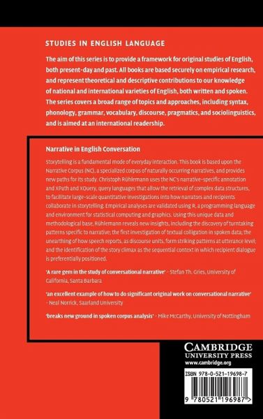 Storytelling is a fundamental mode of everyday interaction. This book is based upon the Narrative Corpus (NC), a specialized corpus of naturally occurring narratives, and provides new paths for its study. Christoph Rühlemann uses the NC's narrative-specific annotation and XPath and XQuery, query languages that allow the retrieval of complex data structures, to facilitate large-scale quantitative investigations into how narrators and recipients collaborate in storytelling. Empirical analyses are validated using R, a programming language and environment for statistical computing and graphics. Using this unique data and methodological base, Rühlemann reveals new insights, including the discovery of turntaking patterns specific to narrative, the first investigation of textual colligation in spoken data, the unearthing of how speech reports, as discourse units, form striking patterns at utterance level, and the identification of the story climax as the sequential context in which recipient dialogue is preferentially positioned.