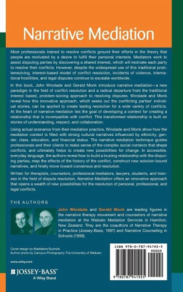 In this groundbreaking book, John Winslade and Gerald Monk -- leaders in the narrative therapy movement-introduce an innovative conflict resolution paradigm that is a revolutionary departure from the traditional problem-solving, interest-based model of resolving disputes. The narrative mediation approach encourages the conflicting parties to tell their personal "story" of the conflict and reach resolution through a profound understanding of the context of their individual stories. The authors map out the theoretical foundations of this new approach to conflict resolution and show how to apply specific techniques for the practical application of narrative mediation to a wide-variety of conflict situations.