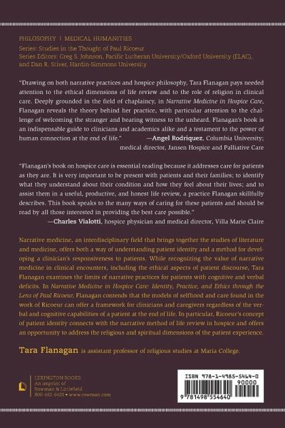 Narrative Medicine in Hospice Care argues that the models of selfhood and care found in the work of Paul Ricoeur can serve as a framework for clinicians, caregivers, and end-of-life patients regardless of the patients' verbal and cognitive capabilities.