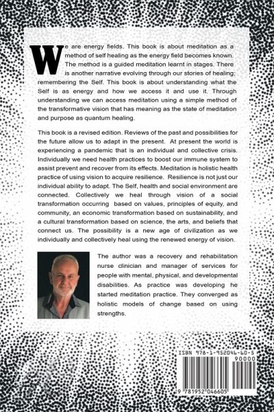 We are energy fields. This book is about meditation as a method of self-healing as the energy field becomes known. The method is a guided meditation learned in stages. There is another narrative evolving through our stories of healing; remembering the Self. This book is about understanding what the Self is as energy and how we access it and use it. Through understanding, we can access meditation using a simple method of the transformative vision that has meaning as the state of meditation and purpose as quantum healing. This book is a revised edition. Reviews of the past and possibilities for the future allow us to adapt to the present. At present, the world is experiencing a pandemic that is an individual and collective crisis. Individually we need health practices to boost our immune system to assist prevent and recover from its effects. Meditation is a holistic health practice of using vision to acquire resilience. Resilience is not just our individual ability to adapt. The Self, health, and social environment are connected. Collectively we heal through the vision of a social transformation occurring based on values, principles of equity, and a cultural transformation based on science, the arts, and beliefs that connect us. The possibility is a new age of civilization as we individually and collectively heal using the renewed energy of vision.
