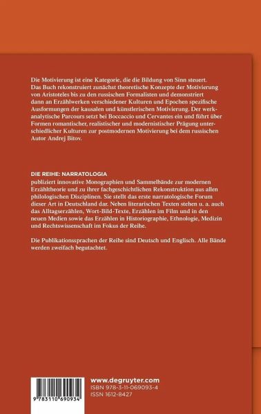 Das Problem der Motivierung in Erzählwerken bedarf weiterer Klärung. Das vorliegende Buch unterscheidet zunächst zwischen der Motivation (der Begründung für die Aktionen der Figuren) und der Motivierung (dem Bestreben des Autors, seinem Werk Schlüssigkeit, Plausibilität und Wirkung zu geben). Angesichts der zahlreichen, in der Systematik oft problematischen Typologien der Motivierung zeichnet sich die einfache Unterscheidung von kausaler und künstlerischer Motivierung als hinreichend für eine funktionale Werkbeschreibung ab. Für die kausale Motivierung wird eine Reihe historisch relevanter Sonderformen ("Motivierung von hinten", "finale Motivierung", Motivierung durch Determination) beschrieben. In einem theoriegeschichtlichen Durchgang werden Konzepte der Motivierung von Aristoteles über den neoaristotelischen russischen Formalismus (Viktor Sklovskij), die fundamentale Kritik Michail Bachtins bis zum frühstrukturalistischen evolutionsbezogenen Ansatz Jurij Tynjanovs betrachtet. Der werkanalytische Parcours setzt bei Boccaccio und Cervantes ein und führt über epochenspezifische Formen romantischer, realistischer und modernistischer Prägung unterschiedlicher Kulturen zur postmodernen Motivierung bei dem russischen Autor Andrej Bitov.