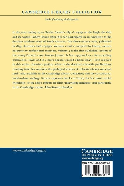 Before Charles Darwin's famous voyage on the Beagle, the ship and its captain Robert Fitzroy (1805â 65) had participated in a challenging survey of the South American coastline. Volume 1 of this three-volume work, published in 1839, describes that 1826â 30 expedition, while Volumes 2 and 3 cover the second voyage.