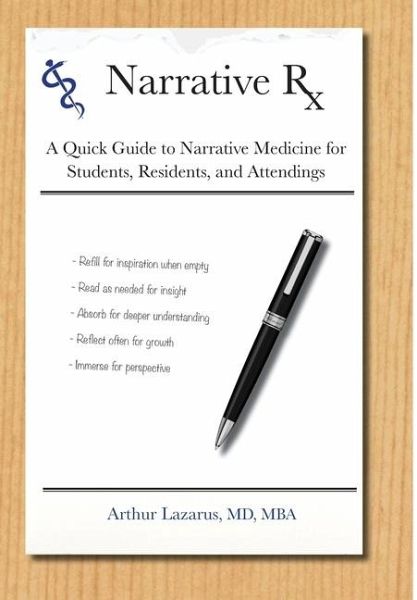 Narrative Rx: A Quick Guide to Narrative Medicine for Students, Residents, and Attendings presents a thoughtfully curated selection of the author's finest literary insights alongside essays crafted to engage and educate medical trainees and practitioners alike. Within these pages, you'll discover a rich compilation of perspectives and stories designed to inspire empathy, compassion, and critical thinking. Written in the spirit of "show and tell," this book serves as a model for writing narratives, directing students and practitioners alike. More than a guide to navigating and shaping the future of medicine, it equips readers with the tools to expertly and intelligently write about their experiences, insights, and reflections, ensuring that their voices - and their patients' voices - contribute meaningfully to the ongoing conversation in health care.