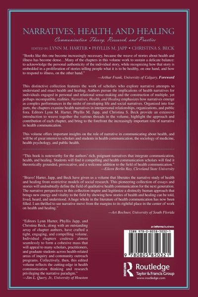 Contents: A.W. Frank Foreword. Preface. Part I: Overview of Narrative and Health Communication Theorizing.P.M. Japp L.M. Harter C.S. Beck Introduction. L.M. Harter P.M. Japp C.S. Beck Vital Problematics of Narrative Theorizing About Health and Healing. A.S. Babrow K.N. Kline W.K. Rawlins Narrating Problems and Problematizing Narratives: Linking Problematic Integration and Narrative Theory in Telling Stories About Our Health. Part II: Personal Narratives and Public Dialogues.P.M. Japp Introduction. C.S. Beck Becoming the Story: Narratives as Collaborative Social Enactments of Individual Relational and Public Identities. L.M. Harter E.L. Kirby A. Edwards A. McClanahan Time Technology and Meritocracy: The Disciplining of Women's Bodies in Narrative Constructions of Age-Related Infertility. P.M. Japp D.K. Japp Desperately Seeking Legitimacy: Narratives of a Bio-Medically Invisible Disease. T. Workman Death as the Representative Anecdote in the Construction of Collegiate "Binge Drinking" Problem. T. Carabas L.M. Harter State-Induced Illness and Forbidden Stories: The Role of Storytelling in Healing Individual and Social Traumas in Romania. A. Singhal K. Chitnis A. Sengupta Cross-Border Mass-Mediated Health Narratives: Narrative Transparency "Safe Sex " and Indian Viewers. Part III: Narrating and Organizing Health Care Events and Resources.L.M. Harter Introduction. W.K. Rawlins Our Family's Physician. J. Morgan-Witte Narrative Knowledge Development Among Caregivers: Stories From the Nurse's Station. Sunwolf L.R. Frey L. Keränen Rx Story Prescriptions: Healing Effects of Storytelling and Storylistening in the Practice of Medicine. S.L. Ragan T. Mindt E. Wittenberg-Lyles Narrative Medicine and Education in Palliative Care. P.M. Buzzanell L.L. Ellingson Contesting Narratives of Workplace Maternity. M.Z. Miller P.G. Martin K.C. Beatty Wholeness in a Breaking World: Narratives as Sustenance for Peace. Part IV: Narrative Sense-Making About Self and Other.C.S. Beck Introduction. B.F. Sharf How I Fired My Surgeon and Embraced an Alternate Narrative. W.A. Beach J. Mandelbaum "My Mom Had a Stroke": Understanding How Patients Raise and Providers Respond to Psychosocial Concerns. M.P. Keeley J.K. Kellas Constructing Life and Death Through Final Conversation Narratives. C. Bosticco T.L. Thompson An Examination of the Role of Narratives and Storytelling in Bereavement. D. O'Hair D. Scannell S. Thompson Agency Through Narrative: Patients Managing Cancer Care in a Challenging Environment. C.S. Beck L.M. Harter P.M. Japp Afterword: Continuing the Conversation: Reflections on Our Emergent Scholarly Narratives.