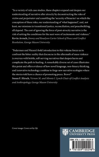 Introduction: Narrative in the aftermath of mass atrocity Sarah Federman and Ronald Niezen; 1. Guilt, responsibility and the limits of identity Diane Enns; 2. Victim, perpetrator, hero: The French national railway's idealized war identities Sarah Federman; 3. Deconstructing the complexities of violence: Uganda and the case against Dominic Ongwen Ayodele Akenroye and Kamari Maxine Clarke; 4. Rehabilitating guerillas in neo-extractivist guatemala Karine Vanthuyne and Marie-Christine Dugal; 5. The road to recognition: Afro-Uruguayan activism and the struggle for visibility Debbie Sharnak; 6. Justice in translation: Uncle Meng and the trials of the foreign Alex Hinton; 7. Memory and victimhoods in post-genocide rwanda: Legal, political and social realities Samantha Lakin; 8. Imaging traitors: The raped woman and sexual violence during the Bangladesh war of 1971 Nayanika Mookerjee; 9. Open source justice: Digital archives and the criminal state Ronald Niezen; 10. Left unsettled: Confessions of armed revolutionaries Leigh Payne; 11. Victims and perpetrators in reconciliation systems design Daniel L Shapiro and Vanessa Liu; Afterword Sarah Federman; Index.