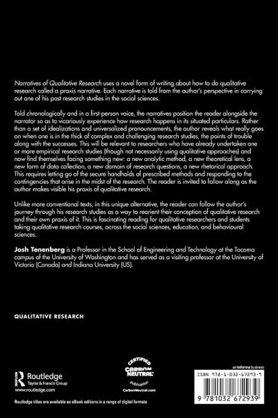 Narratives of Qualitative Research uses a novel form of writing about how to do qualitative research called a praxis narrative. Each narrative is told from the author's perspective in carrying out one of his past research studies in the social sciences.