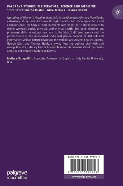Narratives of Women's Health and Hysteria in the Nineteenth-Century Novel looks extensively at hysteria discourse through medical and sociological texts and examines how this body of work intersects with important cultural debates to define women's social, physical, and mental health. The book sketches out prominent shifts in cultural reactions to the idea of diffused agency and the prized model of the interiorized, individual person capable of self will and governance. Melissa Rampelli takes up the work of Jane Austen, Charles Dickens, George Eliot, and Thomas Hardy, showing how the authors play with and manipulate stock literary figures to contribute to this dialogue about the causes and cures of women's hysterical distress.