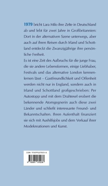 1979 bricht Lara Milo ihre Zelte in Deutschland ab und lebt für zwei Jahre in Großbritannien: Dort in der alternativen Szene unterwegs, aber auch auf ihren Reisen durch Irland und Schottland entdeckt die Zwanzigjährige ihre persönliche Freiheit.