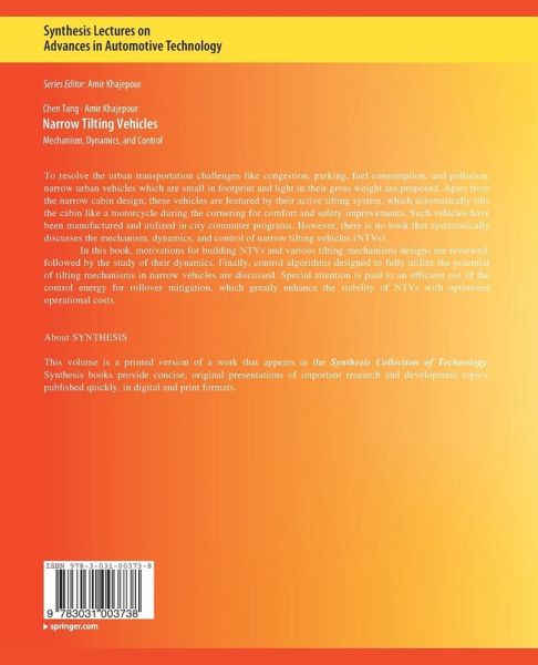 In this book, motivations for building NTVs and various tilting mechanisms designs are reviewed, followed by the study of their dynamics. Finally, control algorithms designed to fully utilize the potential of tilting mechanisms in narrow vehicles are discussed. Special attention is paid to an efficient use of the control energy for rollover mitigation, which greatly enhance the stability of NTVs with optimized operational costs.