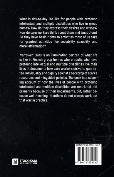 What is day-to-day life like for people with profound intellectual and multiple disabilities who live in group homes? How do they express their desires and wishes? How do care workers think about them and treat them? Do they have basic rights to activities most of us take for granted: activities like sociability, sexuality, and moral affirmation? Narrowed Lives is an illuminating portrait of what life is like in Finnish group homes where adults who have profound intellectual and multiple disabilities live their lives. Based upon ethnographic data, it documents how care workers strive to guarantee individuality and dignity against a backdrop of scarce resources and misguided policies. This book argues that the lives of people with profound disabilities need not be determined by their impairments. It calls for a re-evaluation of disability policy so that its underlying conviction of people with profound intellectual and multiple disabilities as equally valuable fellow humans would materialise in practice. This novel and accessible book combines ethnography and philosophy, and will be of interest to researchers and students in disability studies, special education and philosophy, as well as parents, professionals and policy makers.