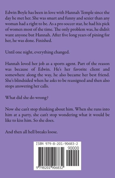 Edwin Boyle has been in love with Hannah Temple since the day he met her. She was smart and funny and sexier than any woman had a right to be. As a pro soccer star, he had his pick of women most of the time. The only problem was, he didn't want anyone but Hannah. After five long years of pining for her, he was done. Finished. Until one night, everything changed. Hannah loved her job as a sports agent. Part of the reason was because of Edwin. He's her favorite client and somewhere along the way, he also became her best friend. She's blindsided when he asks to be reassigned and then also stops answering her calls. What did she do wrong? Now she can't stop thinking about him. When she runs into him at a party, she can't stop wondering what it would be like to kiss him. So she does. And then all hell breaks loose.