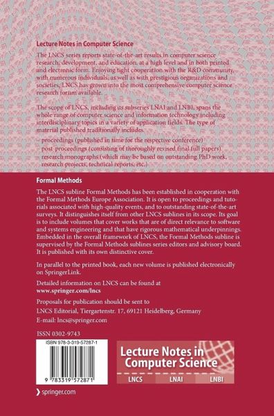 The 23 full and 8 short papers presented in this volume were carefully reviewed and selected from 77 submissions. The papers focus on formal techniques and other approaches for software assurance, their theory, current capabilities and limitations, as well as their potential application to aerospace, robotics, and other NASA-relevant safety-critical systems during all stages of the software life-cycle.