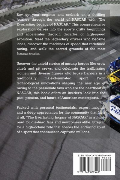 Rev up your engines and embark on a thrilling journey through the world of NASCAR with "The Everlasting Legacy of NASCAR." This comprehensive exploration delves into the sport's gritty beginnings and accelerates through decades of high-speed evolution. Meet the legendary drivers who became icons, discover the machines of speed that redefined racing, and walk the sacred grounds of the most famous tracks. Uncover the untold stories of unsung heroes like crew chiefs and pit crews, and celebrate the trailblazing women and diverse figures who broke barriers in a traditionally male-dominated sport. From technological innovations shaping the new age of racing to the passionate fans who are the heartbeat of NASCAR, this book offers an insider's look into the past, present, and future of American motorsports. Packed with personal testimonials, expert insights, and a deep appreciation for the community that fuels it all, "The Everlasting Legacy of NASCAR" is a must-read for die-hard fans and newcomers alike. Strap in for a high-octane ride that honors the enduring spirit of a sport that continues to captivate millions.