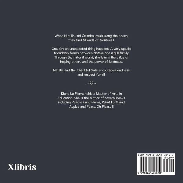 When Natalie and Grandma walk along the beach, they find all kinds of treasures. One day an unexpected thing happens. A very special friendship forms between Natalie and a gull family. Through the natural world, she learns the value of helping others and the power of kindness. Natalie and the Thankful Gulls encourages kindness and respect for all.