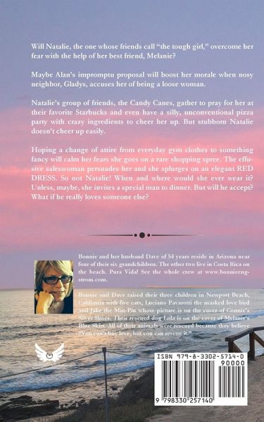 Will Natalie, the one whose friends call "the tough girl," overcome her fear with the help of her best friend, Melanie? Maybe Alan's impromptu proposal will boost her morale when nosy neighbor, Gladys, accuses her of being a loose woman. Natalie's group of friends, the Candy Canes, gather to pray for her at their favorite Starbucks and even have a silly, unconventional pizza party with crazy ingredients to cheer her up. But stubborn Natalie doesn't cheer up easily. Hoping a change of attire from everyday gym clothes to something fancy will calm her fears she goes on a rare shopping spree. The effusive saleswoman persuades her and she splurges on an elegant RED DRESS. So not Natalie! When and where would she ever wear it? Unless, maybe, she invites a special man to dinner. But will he accept? What if he really loves someone else?