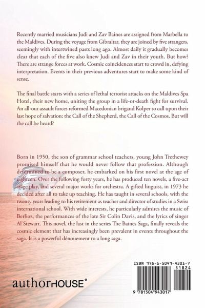 Recently married musicians Judi and Zav Baines are assigned from Marbella to the Maldives. During the voyage from Gibraltar, they are joined by five strangers, seemingly with intertwined pasts long ago. Almost daily it gradually becomes clear that each of the five also knew Judi and Zav in their youth. But how? There are strange forces at work. Cosmic coincidences start to crowd in, defying interpretation. Events in their previous adventures start to make some kind of sense. The final battle starts with a series of lethal terrorist attacks on the Maldives Spa Hotel, their new home, uniting the group in a life-or-death fight for survival. An all-out assault forces reformed Macedonian brigand Kolper to call upon their last hope of salvation: the Call of the Shepherd, the Call of the Cosmos. But will the call be heard?