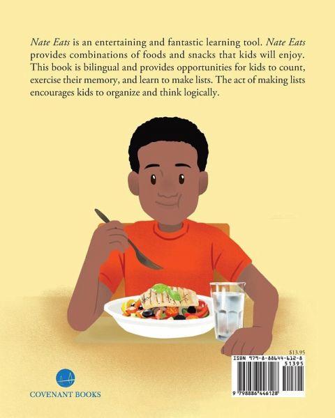 Nate Eats is an entertaining and fantastic learning tool. Nate Eats provides combinations of foods and snacks that kids will enjoy. This book is bilingual and provides opportunities for kids to count, exercise their memory, and learn to make lists. The act of making lists encourages kids to organize and think logically.