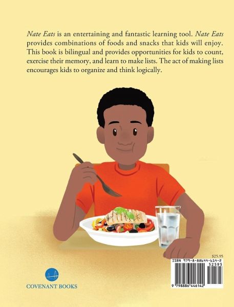 Nate Eats is an entertaining and fantastic learning tool. Nate Eats provides combinations of foods and snacks that kids will enjoy. This book is bilingual and provides opportunities for kids to count, exercise their memory, and learn to make lists. The act of making lists encourages kids to organize and think logically.