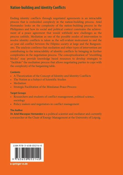Ending identity conflicts through negotiated agreements is an intractable process that is embedded complexly in the nation-building process. Ariel Hernandez looks on the complexity of the nation-building process in the Philippines and how its social and political context constrains the achievement of a peace agreement that would withhold new challenges as the process unfolds. Mediation as one of the possible modes of intervention to resolve identity conflicts is taken as the self-evident instrument to end the 40 year old conflict between the Filipino society at large and the Bangsamoro. The analysis confirms that mediation and other types of intervention are contributing to the intractability of identity conflicts by bringing in further complexities in the negotiation process. The conceptualization of "stumbling blocks" may provide knowledge based resources to develop strategies to "facilitate" the mediation process that allows negotiating parties to cope with the complexity of the bargaining table.