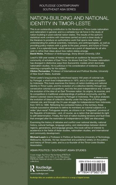 Timor-Leste's long journey to nationhood spans 450 years of colonial rule by Portugal, a short-lived independence in 1975, and a 24-year occupation by Indonesia. This book examines the history of nation-building and national identity in Timor-Leste, and the evolution of a collective identity through two consecutive colonial occupations, and into the post-independence era. It charts the evolution of the idea of an East Timorese nation: its origins, its sources, and its competitors in traditional understandings of political community, and the distinct colonial visions imposed by Portugal or Indonesia. The author analyses the evolution of ideas of collective identity under the long era of Portuguese colonial rule, and through the 24-year struggle for independence from Indonesia from 1975 to 1999. Reflecting the contested history of the territory, these include successive attempts to define its members as colonial subjects in a wider 'pluri-racial' Portuguese empire, as citizens in an 'integrated' province of the Republic of Indonesia - and, of course, as a nation that demanded its right to self-determination. Finally, the host of nation-building tensions and fault lines that emerged after the restoration of independence in 2002 are discussed. Examining the history of debates and conflict over national identity, national history, cultural heritage, language policy, and relationships between distinct regions, generations, and language groups, this book will be of interest to academics in the fields of Asian studies, nationalism studies, and international and community development.