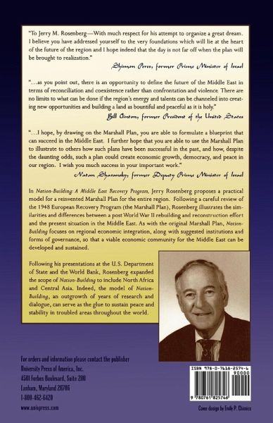 Using the 1947 Marshall Plan as a guide for reconstruction and rehabilitation of western Europe following World War II, this volume anticipates the need for U.S. financial aid of billions of dollars to serve as the glue for stability and peace throughout the region of the Middle East, North Africa, and Central Asia, including Pakistan and Afghanistan. As with the Marshall Plan, demands for regional economic integration are described with a model for a potential economic community of 28 nations, composed of one billion people.