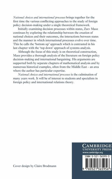 National choices and international processes brings together for the first time the various conflicting approaches to the study of foreign policy decision-making under a single theoretical framework. Initially examining decision processes within states, Zeev Maoz continues by exploring the relationship between the creation of national choices and their outcomes, the interactions between states and the manner in which international processes evolve over time. This he calls the 'bottom up' approach which is contrasted in his last chapter with the 'top down' approach of systems analysis. Although the focus of this study is on theoretical construction, Maoz provides a thorough analysis of the literature on foreign policy decision-making and international bargaining. His arguments are supported both by separate chapters of mathematical analysis and by numerous historical examples, often from the Middle East - an area where the author has particular expertise. National choices and international processes is the culmination of many years work. It will be of interest to students and specialists in foreign policy and international relations theory.