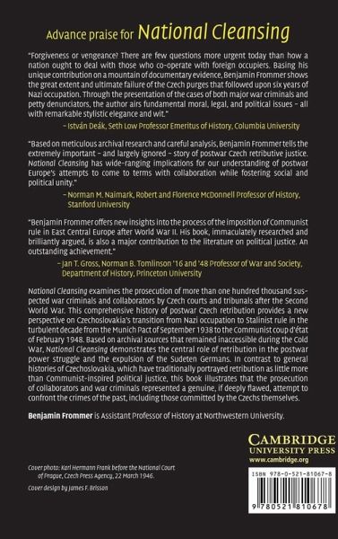 National Cleansing examines the prosecution of over one hundred thousand suspected war criminals and collaborators by Czech courts and tribunals after the Second World War. As the first comprehensive history of postwar Czech retribution, this book provides a new perspective on Czechoslovakia's transition from Nazi occupation to Stalinist rule in the turbulent decade from the Munich Pact of September 1938 to the Communist coup d'état of February 1948. Based on archival sources that remained inaccessible during the Cold War, National Cleansing demonstrates the central role of retribution in the postwar power struggle and the contemporary expulsion of the Sudeten Germans. In contrast to general histories of postwar Czechoslovakia, which portray retribution as little more than Communist-inspired political justice, this book illustrates that the prosecution of collaborators and war criminals represented a genuine, if flawed, attempt to confront the crimes of the past, including those committed by the Czechs themselves.