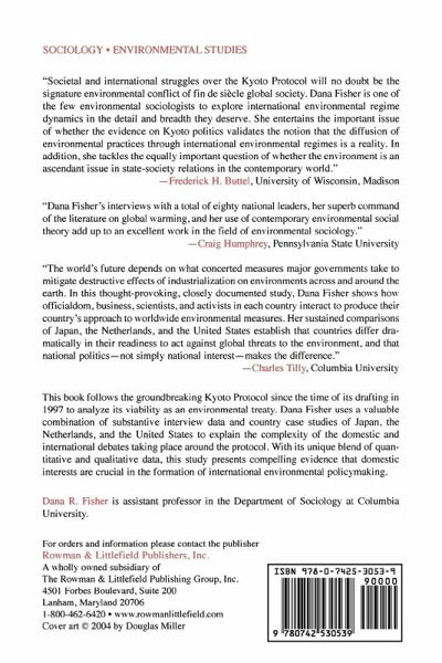 This book follows the groundbreaking Kyoto Protocol from the time of its drafting in 1997 to analyze its viability as an environmental treaty. Dana R. Fisher uses a valuable combination of substantive interview data and country case studies to understand the complexity of the domestic and international debates taking place around the Protocol. With its unique blend of quantitative and qualitative data, this study presents compelling evidence that domestic interests are crucial in the formation of international environmental policymaking.