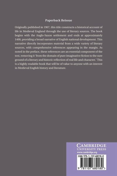 Originally published in 1907, this title constructs a historical account of life in medieval England through the use of literary sources. The book begins with the Anglo-Saxon settlement and ends at approximately 1400, providing a broad narrative of English national development. This narrative directly incorporates material from a wide variety of literary sources, with comprehensive references appearing in the margin. As noted in the preface, these references are an essential component of the text, removing it 'from the domain of pure imaginative fiction to the sure ground of a literary and historic reflection of real life and character'. This is a highly readable book that will be of value to anyone with an interest in medieval English history and literature.