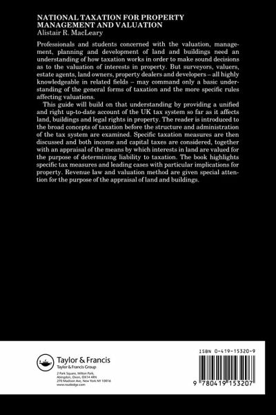 A clear and up-to-date guide to the UK tax system for surveyors and valuers which demonstrates land valuation for taxation purposes.