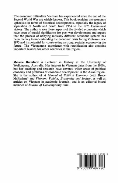 This study explains the economic upheavals experienced by Vietnam since the end of the War in terms of historical developments, especially the legacy of separation of North and South from 1954 to the 1975 Communist victory and traces aspects of the divided economies which have been of significance.