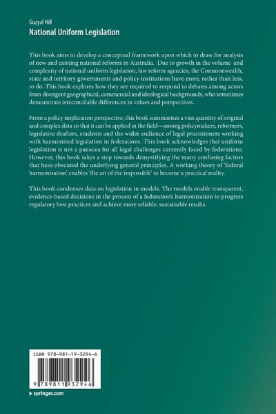 This book aims to develop a conceptual framework upon which to draw for analysis of new and existing national reforms in Australia. Due to growth in the volume and complexity of national uniform legislation, law reform agencies, the Commonwealth, state and territory governments and policy institutions have more, rather than less, to do. This book explores how they are required to respond to debates among actors from divergent geographical, commercial and ideological backgrounds, who sometimes demonstrate irreconcilable differences in values and perspectives.
