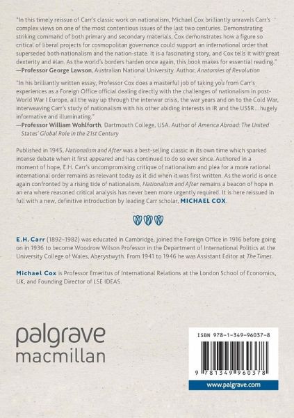 Published in 1945, Nationalism and After was a best-selling classic in its own time which sparked intense debate when it first appeared and has continued to do so ever since. Authored in a moment of hope, E.H. Carr's uncompromising critique of nationalism and plea for a more rational international order remains as relevant today as it did when it was first written. As the world is once again confronted by a rising tide of nationalism, Nationalism and After remains a beacon of hope in an era where reasoned critical analysis has never been more urgently required. It is here reissued in full with a new, definitive introduction by leading Carr scholar, Michael Cox.