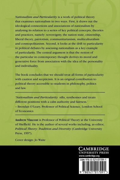 Nationalism and Particularity, first published in 2002, is a work of political theory that examines nationalism in two ways. Firstly it draws out the ideological connections and associations of nationalism by analysing its relation to a series of key political concepts, theories and practices: namely, sovereignty, the nation state, citizenship, liberal theory, patriotism, communitarianism, multiculturalism and cosmopolitanism. Second, it looks at the drift to particularity in political debates by assessing nationalism as a key example of particularity. The central argument is that the notion of the particular in contemporary thought derives its moral and generative force from association with the idea of the personality and individuality. The book concludes that we should treat all forms of particularity with caution and scepticism. It is an original contribution to political theory accessible to students in philosophy, politics and law.