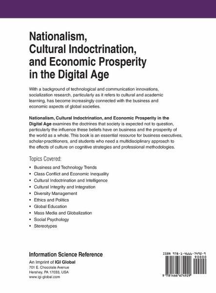 With a background of technological and communication innovations, socialization research, particularly as it refers to cultural and academic learning, has become increasingly connected with the business and economic aspects of global societies. Nationalism, Cultural Indoctrination, and Economic Prosperity in the Digital Age examines the doctrines that society is expected not to question, particularly the influence these beliefs have on business and the prosperity of the world as a whole. This book is an essential resource for business executives, scholar-practitioners, and students who need a multidisciplinary approach to the effects of culture on cognitive strategies and professional methodologies.