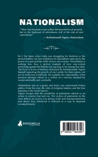 Be it the times when India was struggling for freedom or the present battles, the true definition of nationalism came up by the power of a pen and the skills of men and women. Nationalism is nothing less than a perfect example of how non-violent protesting against the British was aspiring to be during that time. The book is a trio of lectures delivered by Rabindranath Tagore himself regarding the growth of one's pride for their nation, not just in India but worldwide. He explains the vulnerability of his position amongst others as a citizen of a country doomed by racism internally and externally. Nationalism acts as a guide and helps you understand Indian politics from the core, the roles of religious leaders, and the true meaning of the word 'nation'. Tagore accepts that the possibility of patriotism started as an action to counter hue and cry. The section of patriotism in the west defines an elusive rim among truth and misrepresentation and shows how falsehood is lionized as a way to financial accomplishment.