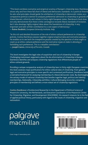 "In this rich and detailed discussion of the role of ethno-cultural preferences in citizenship policies, Costica Dumbrava weaves together original empirical data and normative analyses. He enables us to seeboth the interpretive puzzles created by the question of what ought to count as an ethno-cultural preference and the normative issues at stake in allowing or forbidding such preferences. This is a valuable contribution." Joseph Carens, University of Toronto, Canada