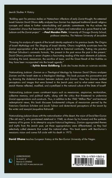 Nationalizing Judaism studies the transformation of Jewish themes, historical myths, biblical metaphors, and theological visions into a national interpretation—the Zionist movement and the Israeli state.
