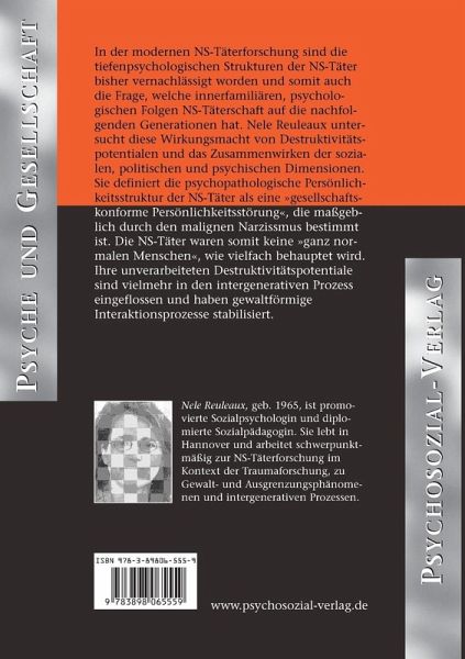 In der modernen NS-Täterforschung sind die tiefenpsychologischen Strukturen der NS-Täter bisher vernachlässigt worden und somit auch die Frage, welche innerfamiliären, psychologischen Folgen NS-Täterschaft auf die nachfolgenden Generationen hat. Nele Releaux untersucht diese Wirkungsmacht von Destruktivitätspotenzialen und das Zusammenwirken der sozialen, politischen und psychischen Dimensionen. Sie definiert die psychopathologische Persönlichkeitsstruktur der NS-Täter als eine "gesellschaftskonforme Persönlichkeitsstörung", die maßgeblich durch den malignen Narzissmus bestimmt ist. Die NS-Täter waren somit keine "ganz normalen Menschen", wie vielfach behauptet wird. Ihre unverarbeiteten Destruktivitätspotentiale sind vielmehr in den intergenerativen Prozess eingeflossen und haben gewaltförmige Interaktionsprozesse stabilisiert.