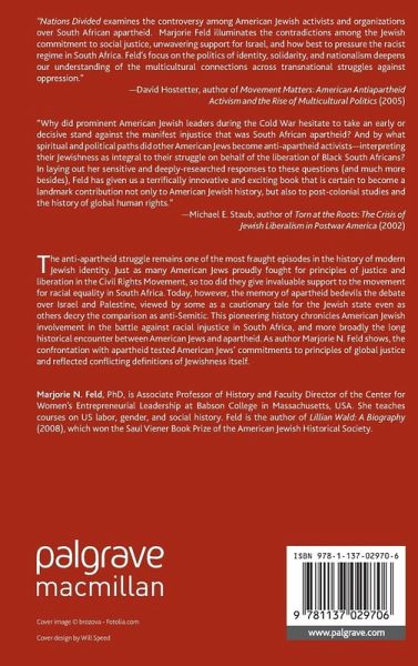 "Nations Divided examines the controversy among American Jewish activists and organizations over South African apartheid. Marjorie Feld illuminates the contradictions among the Jewish commitment to social justice, unwavering support for Israel, and how best to pressure the racist regime in South Africa. Feld's focus on the politics of identity, solidarity and nationalism deepens our understanding of the multicultural connections across transnational struggles against oppression." - David Hostetter, author of Movement Matters: American Antiapartheid Activism and the Rise of Multicultural Politics (2005)