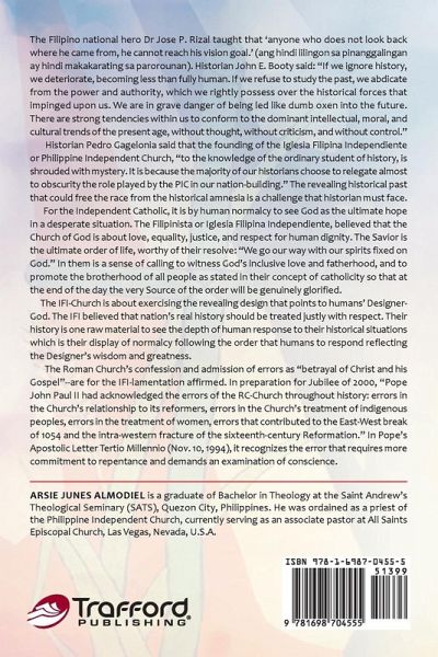 The Book is about the history of struggle for respect of human dignity and freedom against man-made darkness in which I.F.I. is one expression. This book aims to make people see that nation's human struggle is one venue to see the human design, that by it, man is one manifestation of the great Designer/Creator. The hope through it is that 'human history' should be respected and sanctity be preserved; and not be altered by 'propaganda' and lies, instead, record of actuality and of truth in which by honesty liberates the oppressed and the oppressor. Then, we can affirm the truths of Jesus for life. With all "sects" of prosperity, self and of claims today Christianity seems reduced into selective Bible-ism, conversation in the table between pro-imperialist and nationalistic, heavenward and earthward is needed to make sense of Christianity here and now. Jesus said 'Love the Lord your God with all your heart, mind, spirit and strength', man's total being cannot pretend to be spirit only, cannot dictate God to be for spirit and heaven only. 'Historical sense' shaped ecclesiality for the whole global community of all race.