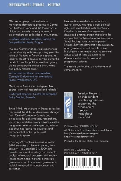 Covering 29 countries and administrative areas, Nations in Transit 2010 provides comparative ratings and in-depth analysis of electoral processes, civil society, independent media, national democratic governance, local democratic governance, judicial framework & independence, and corruption.