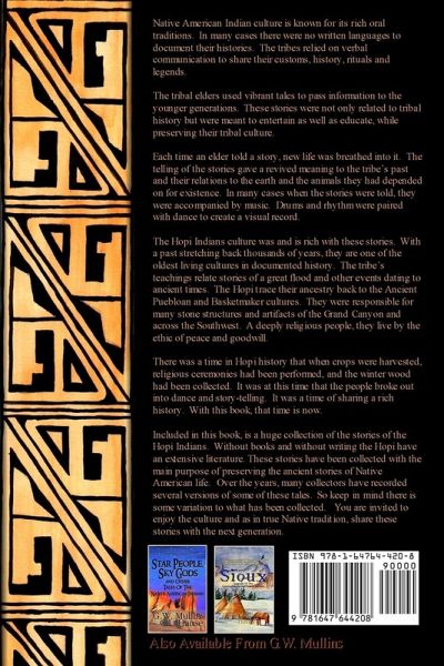 Native American Indian culture is known for its rich oral traditions. In many cases there were no written languages to document their histories. The tribes relied on verbal communication to share their customs, history, rituals and legends. The tribal elders used vibrant tales to pass information to the younger generations. These stories were not only related to tribal history but were meant to entertain as well as educate, while preserving their tribal culture. Each time an elder told a story, new life was breathed into it. The telling of the stories gave a revived meaning to the tribe’s past and their relations to the earth and the animals they had depended on for existence. In many cases when the stories were told, they were accompanied by music. Drums and rhythm were paired with dance to create a visual record. The Hopi Indians culture was and is rich with these stories. With a past stretching back thousands of years, they are one of the oldest living cultures in documented history. The tribe’s teachings relate stories of a great flood and other events dating to ancient times. The Hopi trace their ancestry back to the Ancient Puebloan and Basketmaker cultures. They were responsible for many stone structures and artifacts of the Grand Canyon and across the Southwest. A deeply religious people, they live by the ethic of peace and goodwill. There was a time in Hopi history that when crops were harvested, religious ceremonies had been performed, and the winter wood had been collected. It was at this time that the people broke out into dance and story-telling. It was a time of sharing a rich history. With this book, that time is now. Included in this book, is a huge collection of the stories of the Hopi Indians. Without books and without writing the Hopi have an extensive literature. These stories have been collected with the main purpose of preserving the ancient stories of Native American life. Over the years, many collectors have recorded several versions of some of these tales. So keep in mind there is some variation to what has been collected. You are invited to enjoy the culture and as in true Native tradition, share these stories with the next generation.