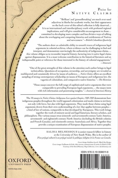 This groundbreaking collection of essays shows that, from the moment European expansion commenced through to the twentieth century, indigenous peoples from America, Africa, Australia and New Zealand drafted legal strategies to contest dispossession. The story of indigenous resistance to European colonization is well known. But legal resistance has been wrongly understood to be a relatively recent phenomenon. These essays demonstrate how indigenous peoples throughout the world opposed colonization not only with force, but also with ideas. They made claims to territory using legal arguments drawn from their own understanding of a law that applies between peoples - a kind of law of nations, comparable to that being developed by Europeans. The contributors to this volume argue that in the face of indigenous legal arguments, European justifications of colonization should be understood not as an original and originating legal discourse but, at least in part, as a form of counter-claim. Native Claims: Indigenous Law against Empire, 1500-1920 brings together the work of eminent social and legal historians, literary scholars, and philosophers, including Rolena Adorno, Lauren Benton, Duncan Ivison, and Kristin Mann. Their combined expertise makes this volume uniquely expansive in its coverage of a crucial issue in global and colonial history. The various essays treat sixteenth- and seventeenth-century Latin America, seventeenth- and eighteenth-century North America (including the British colonies and French Canada), and nineteenth-century Australasia and Africa. There is no other book that examines the issue of European dispossession of native peoples in such a way.