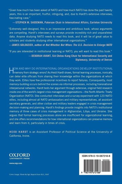 In crisis management operations, strategic errors can cost lives. Some international organizations (IOs) learn from these failures whereas others tend to repeat them. Given that they have high rates of turnover, how is it possible that any IO retains knowledge about the past? This book introduces an argument for how and why IOs develop institutional memory from their efforts to manage crises. Findings indicate that the design of an IO's learning infrastructure (e.g. lessons learned offices and databases) can inadvertently disincentivize IO elites from using it to share knowledge about strategic errors. Elites - high-level officials in IOs - perceive reporting to be a risky endeavour. In response, they develop institutional memory by creating and using informal processes, including transnational interpersonal networks, private documentation and conversations during crisis management exercises. The result is an institutional memory that is highly dependent on only a handful of individuals. The book draws on the author's interviews and a survey experiment with 120 NATO elites across four countries. Cases of NATO crisis management in Afghanistan, Libya and Ukraine further illustrate the development of institutional memory. Findings challenge existing research on organizational learning by suggesting that formal learning processes alone are insufficient for ensuring that learning happens. The book also offers recommendations to policymakers for strengthening the learning capacity of IOs.