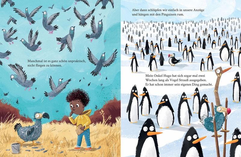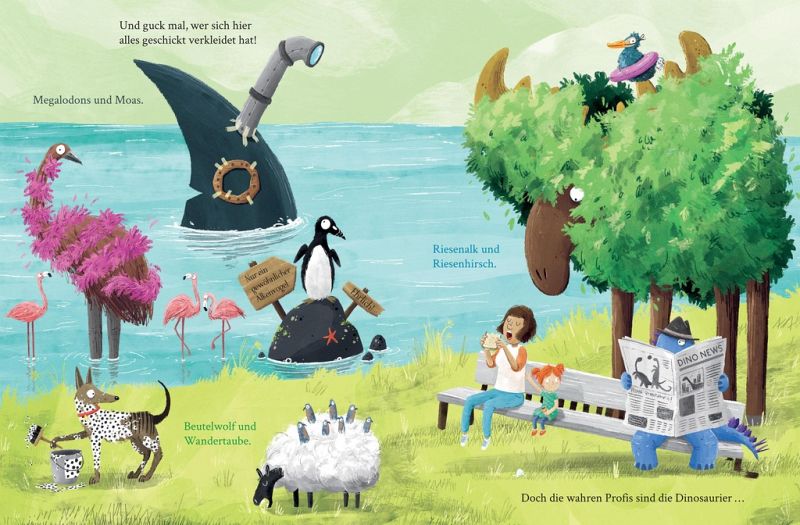 Ein lustiges Bilderbuch zum Suchen und Mitraten. Mit spannenden Infos zu bedrohten und ausgestorbenen TierartenWir alle wissen, dass Dodos ausgestorben sind. Richtig? Nein, falsch, sind sie nicht! Dodos, Quaggas, Säbelzahntiger - selbst Mammute und Dinos leben mitten unter uns! Genau vor unseren Nasen. Denn diese angeblich längst ausgestorbenen Tiere sind Meister der Tarnung. Da werden Säbelzahntigerzähne gekonnt hinter falschen Bärten versteckt, gestreifte Hosen übergestülpt, um Zebras zu ähneln, und zottelige Mammuthaare einfach abrasiert.Also haltet die Augen offen, man weiß nie, wo sie sich verstecken ...