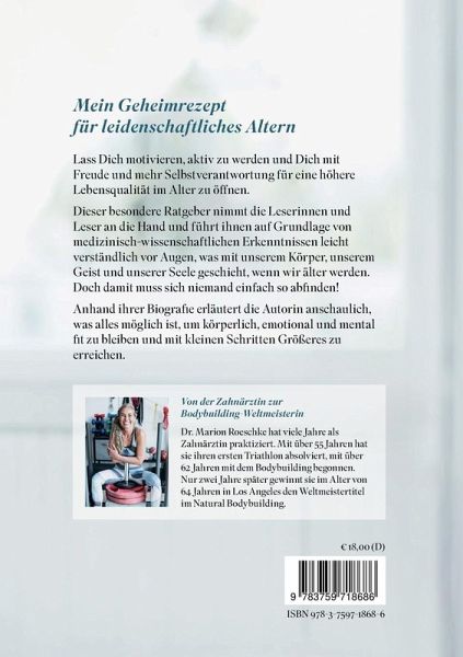 Lass Dich motivieren, aktiv zu werden und Dich mit Freude und mehr Selbstverantwortung für eine höhere Lebensqualität im Alter zu öffnen. Dieser besondere Ratgeber nimmt die Leserinnen und Leser an die Hand und führt ihnen auf Grundlage von medizinisch-wissenschaftlichen Erkenntnissen leicht verständlich vor Augen, was mit unserem Körper, unserem Geist und unserer Seele geschieht, wenn wir älter werden. Doch damit muss sich niemand einfach so ab¿nden! Anhand ihrer Biogräe erläutert die Autorin anschaulich, was alles möglich ist, um körperlich, emotional und mental ¿t zu bleiben und mit kleinen Schritten Größeres zu erreichen.